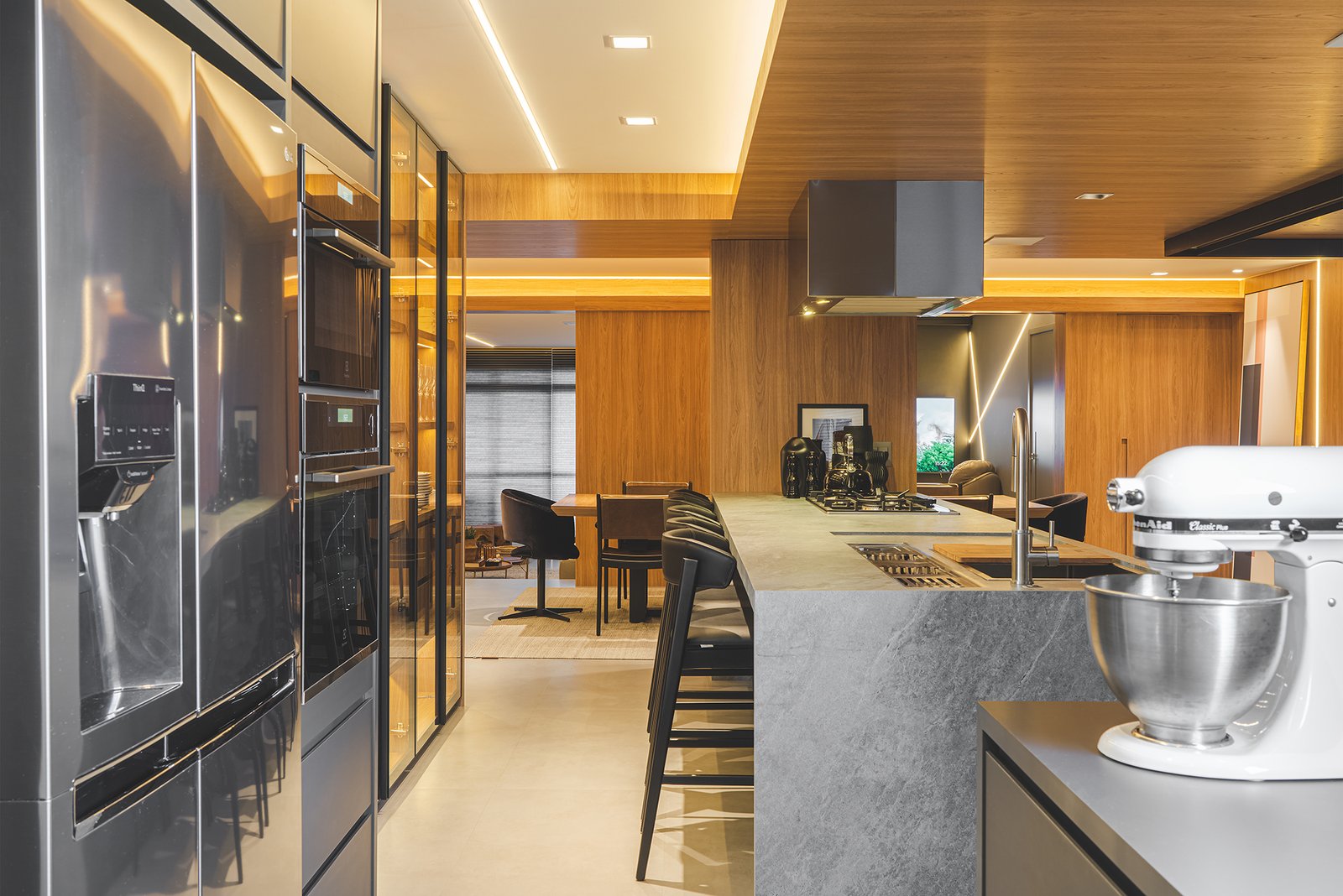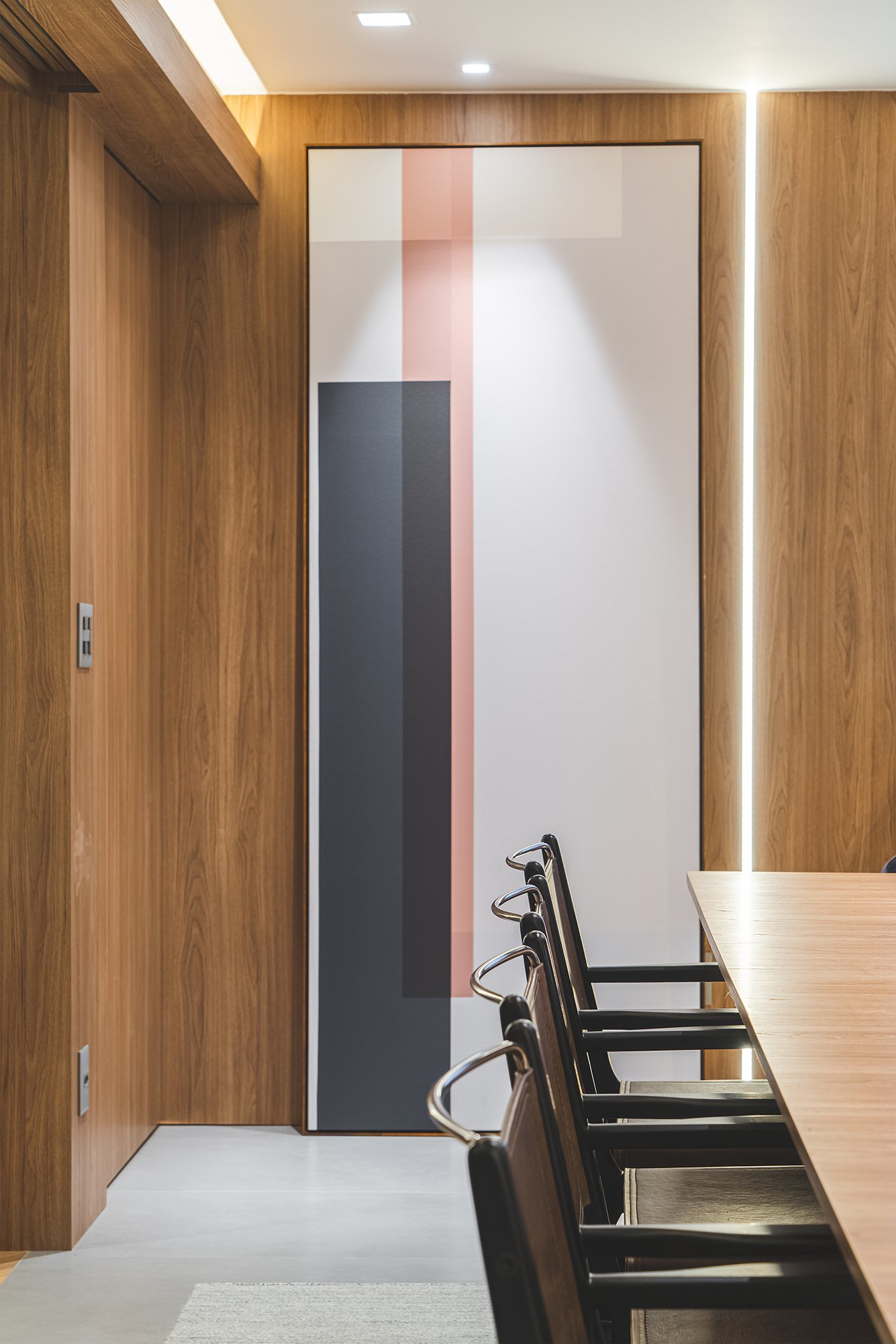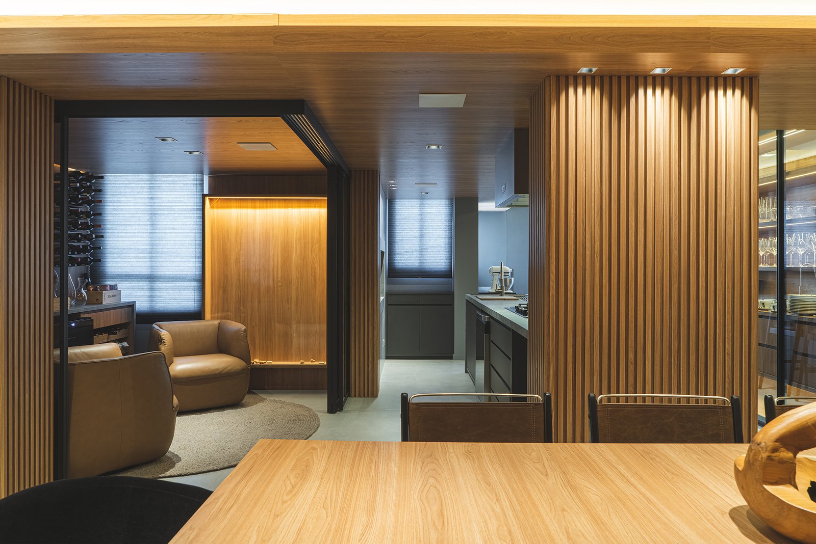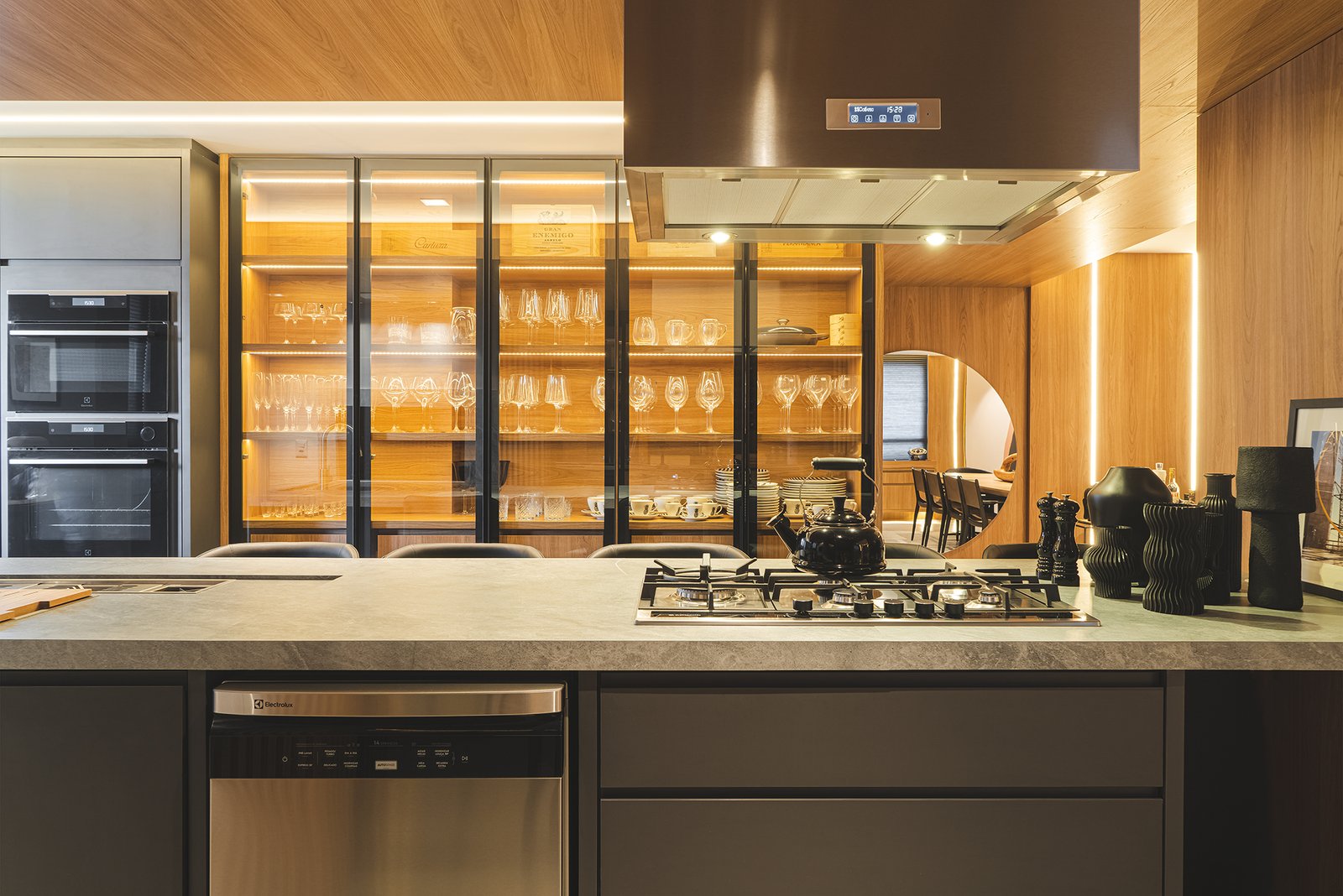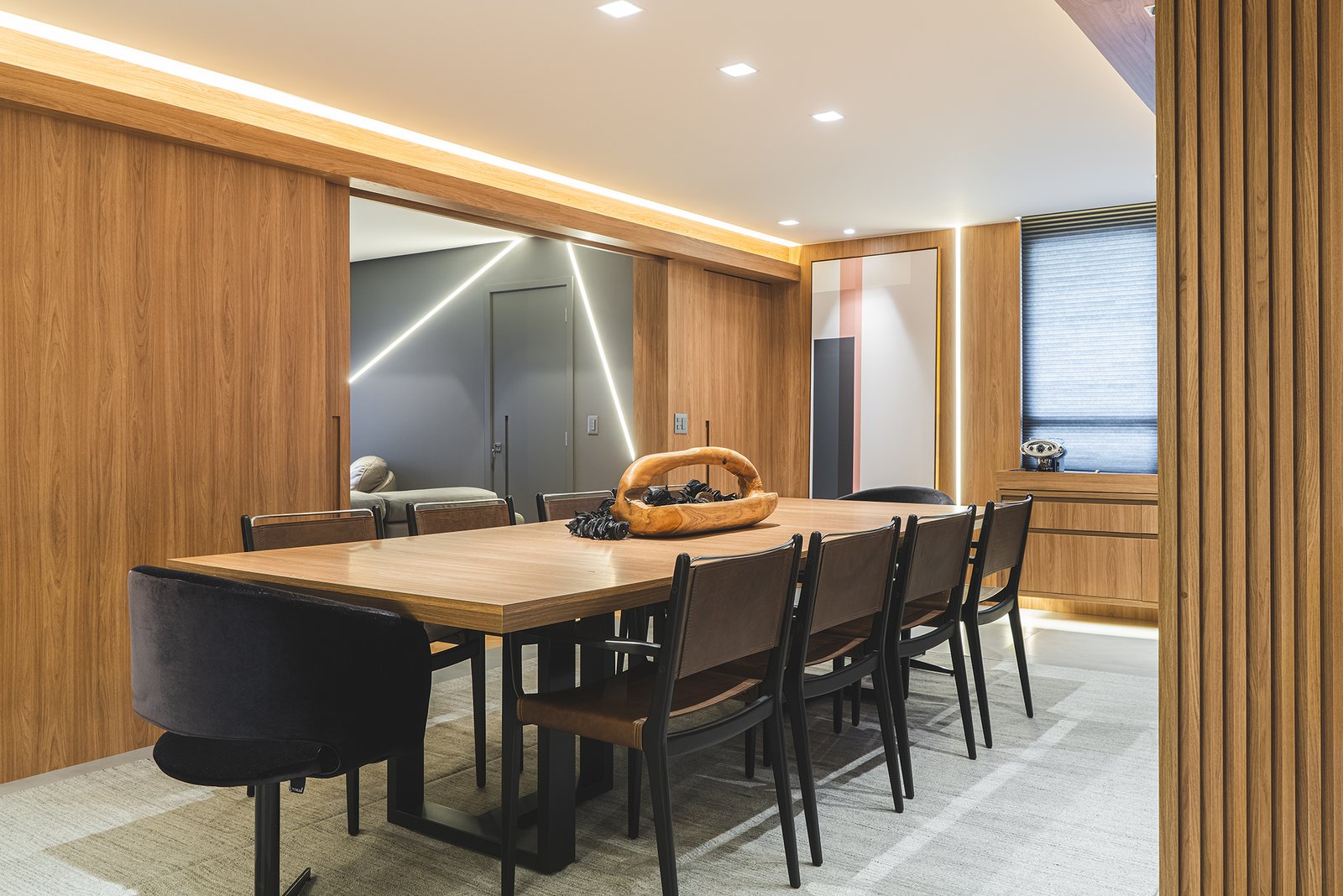 Sofisticação, beleza e exuberância num projeto com paleta autoral com móveis assinados e cheio de requinte. A adega do projeto 902 foi projetada como um espaço acolhedor e sofisticado, pensado para momentos de pausa e apreciação.