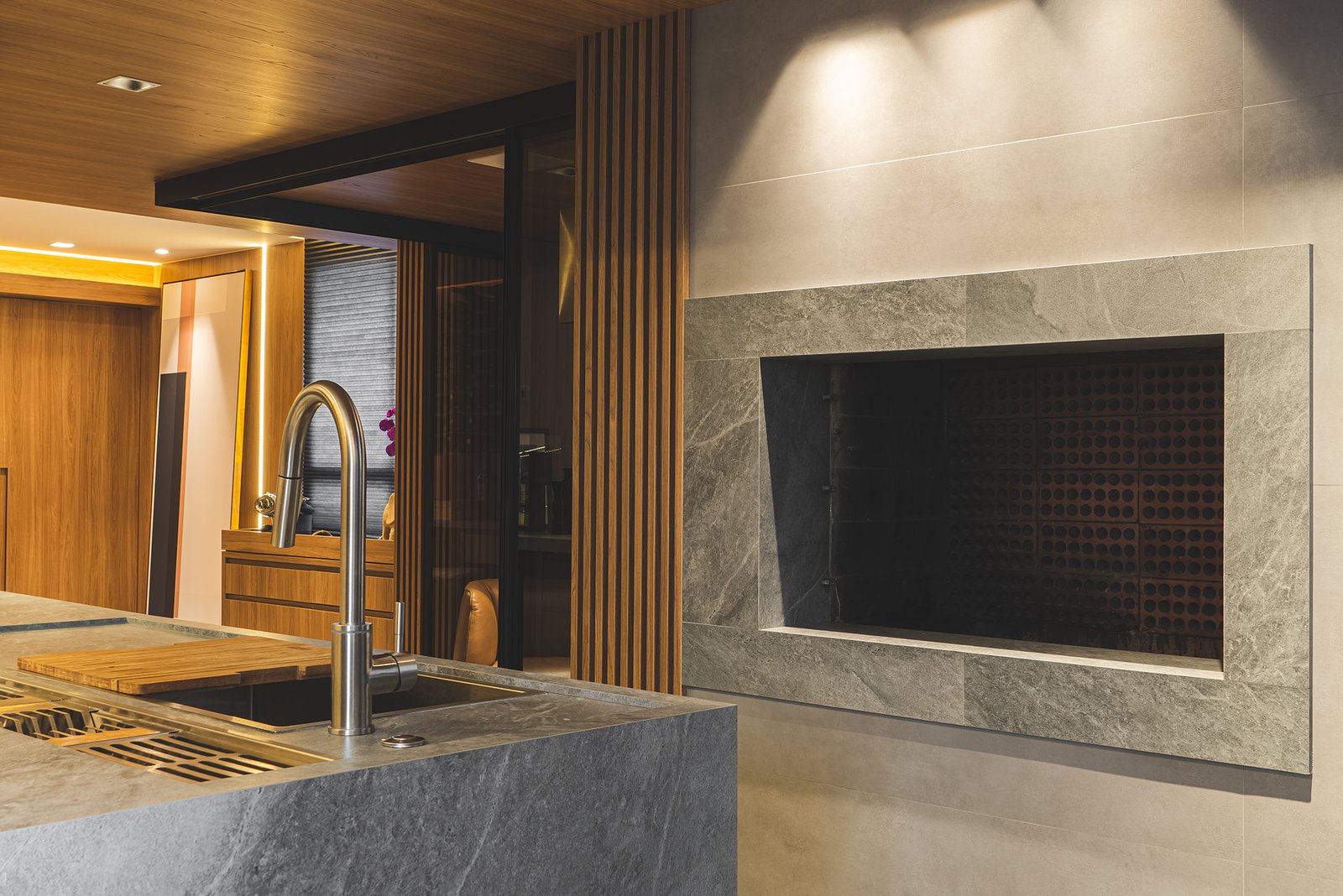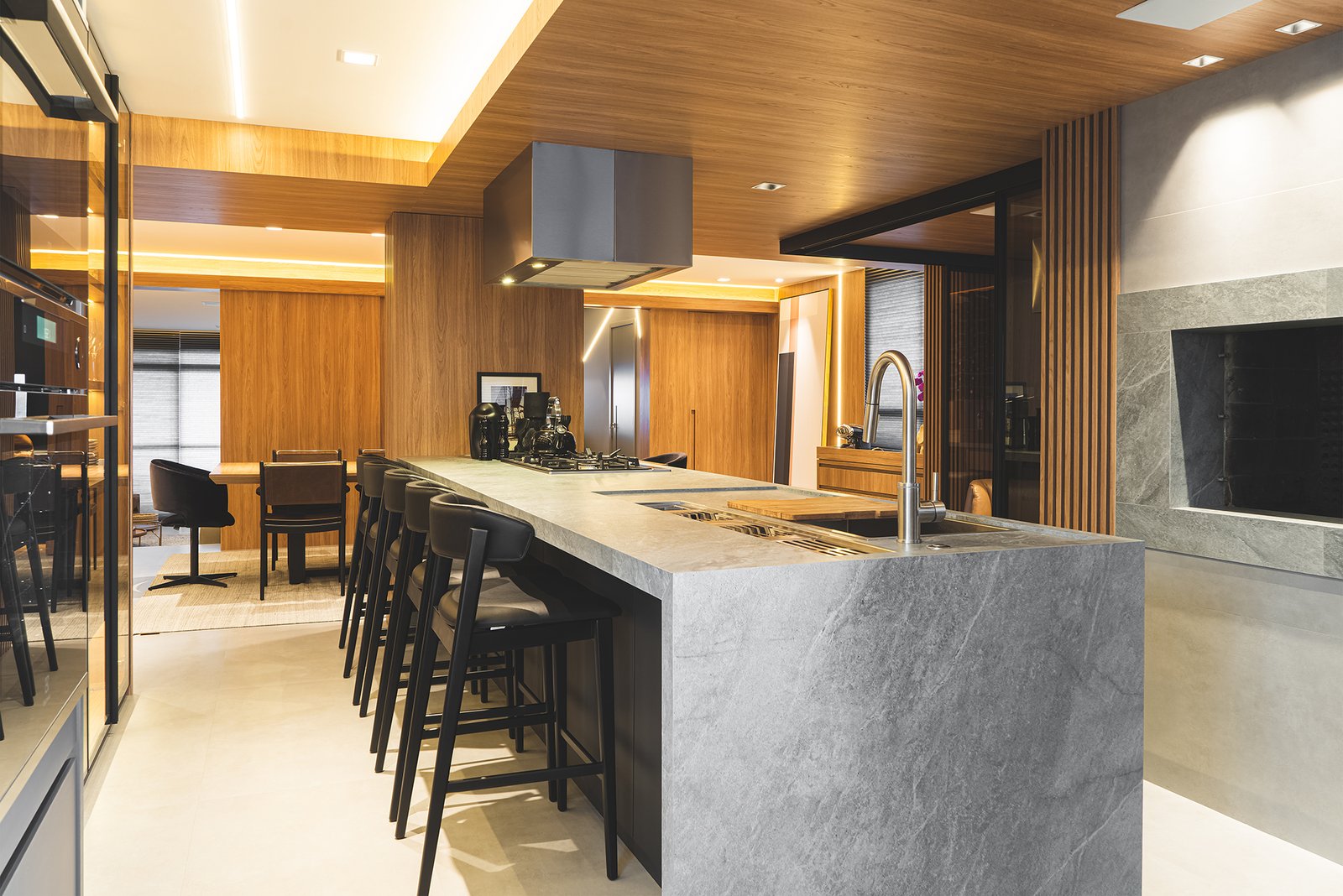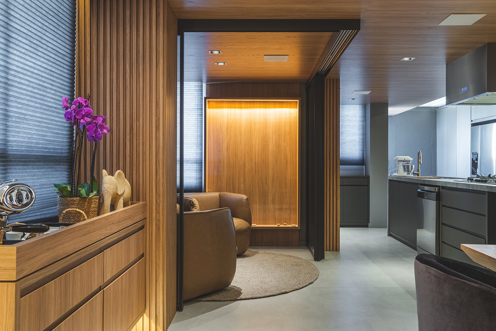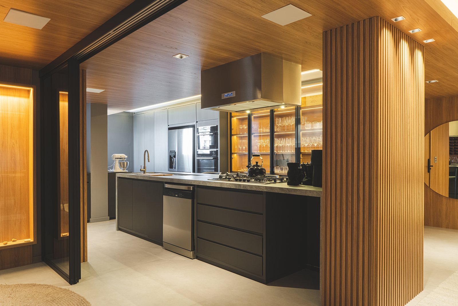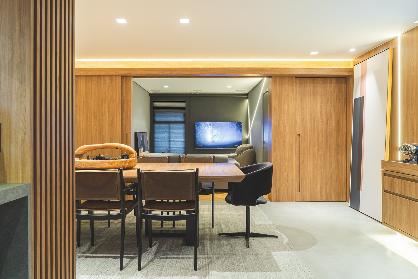 Sofisticação, beleza e exuberância num projeto com paleta autoral com móveis assinados e cheio de requinte. A adega do projeto 902 foi projetada como um espaço acolhedor e sofisticado, pensado para momentos de pausa e apreciação.