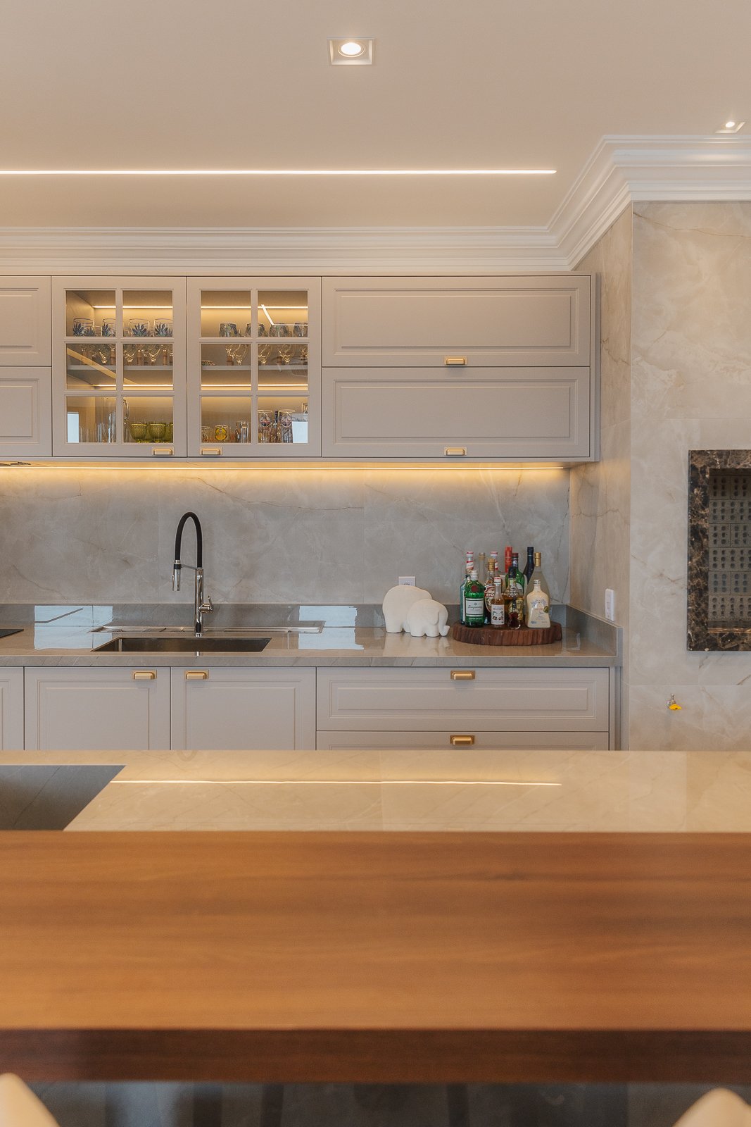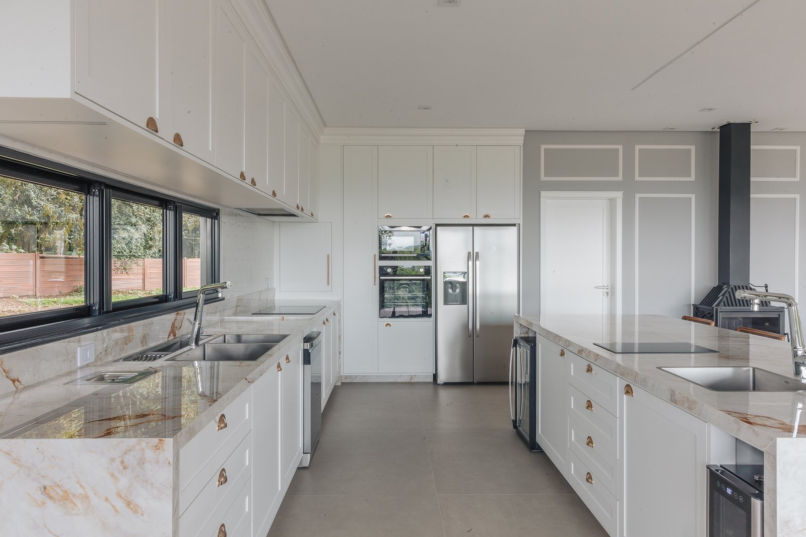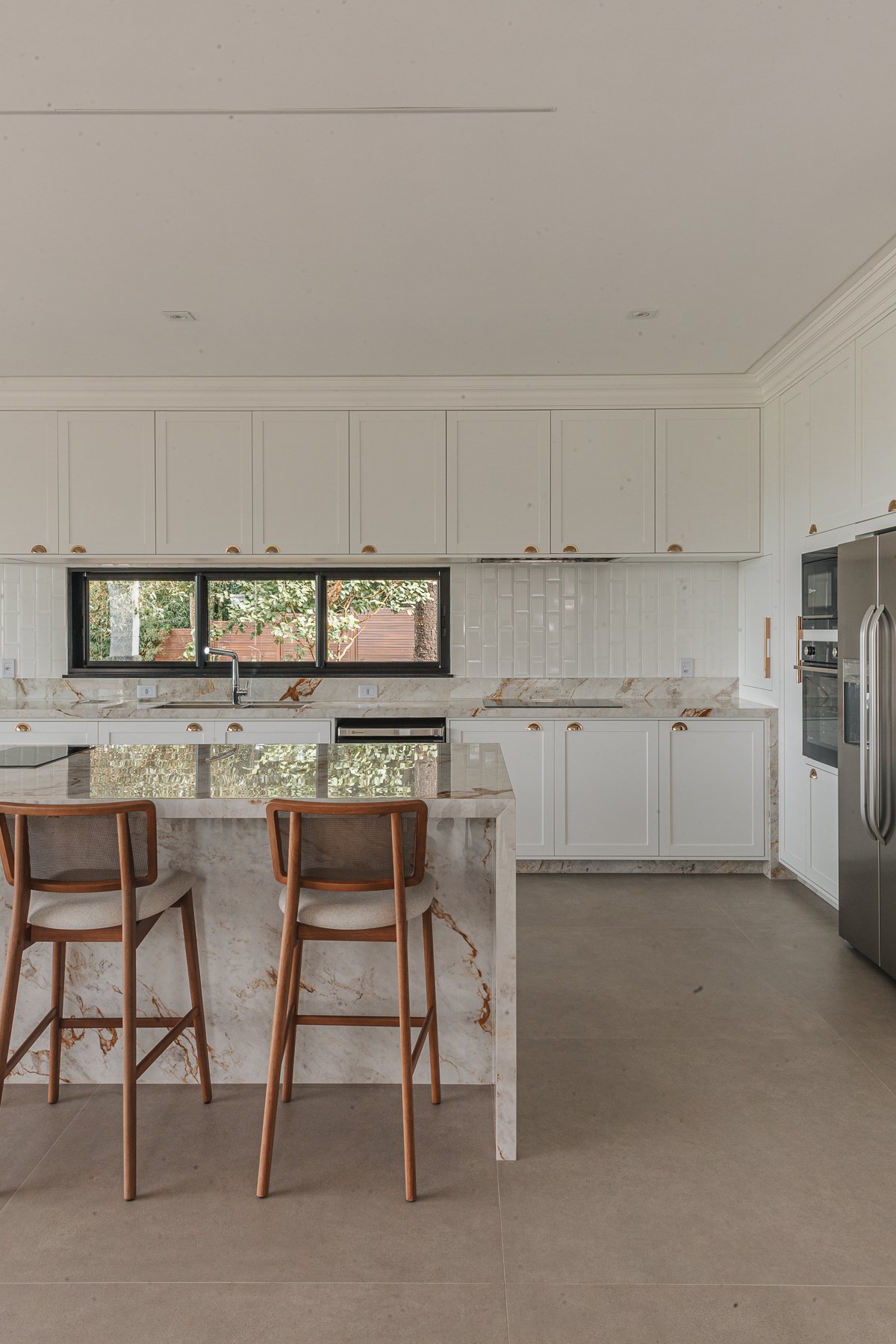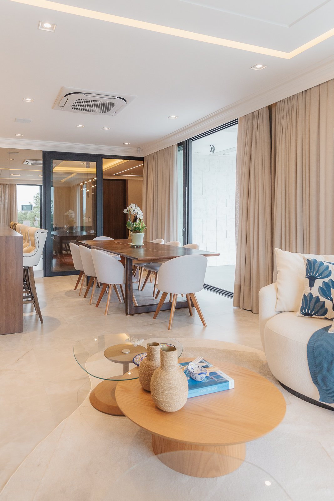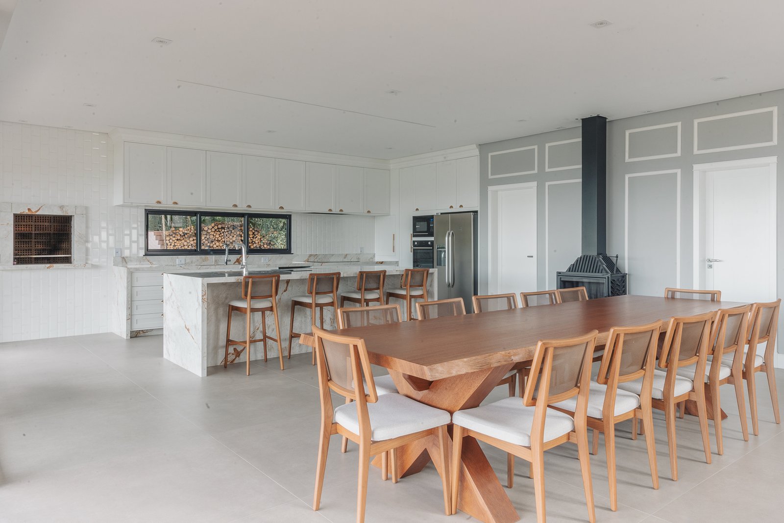 Destaca-se pela luminotécnica noturna, que valoriza cada elemento arquitetônico e potencializa a atmosfera acolhedora da residência.