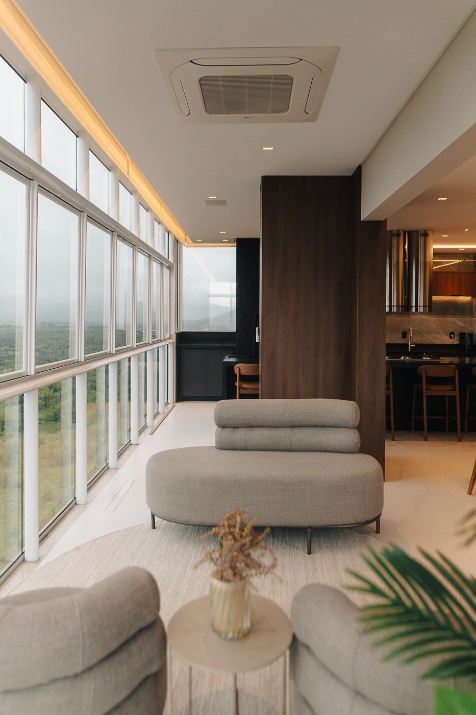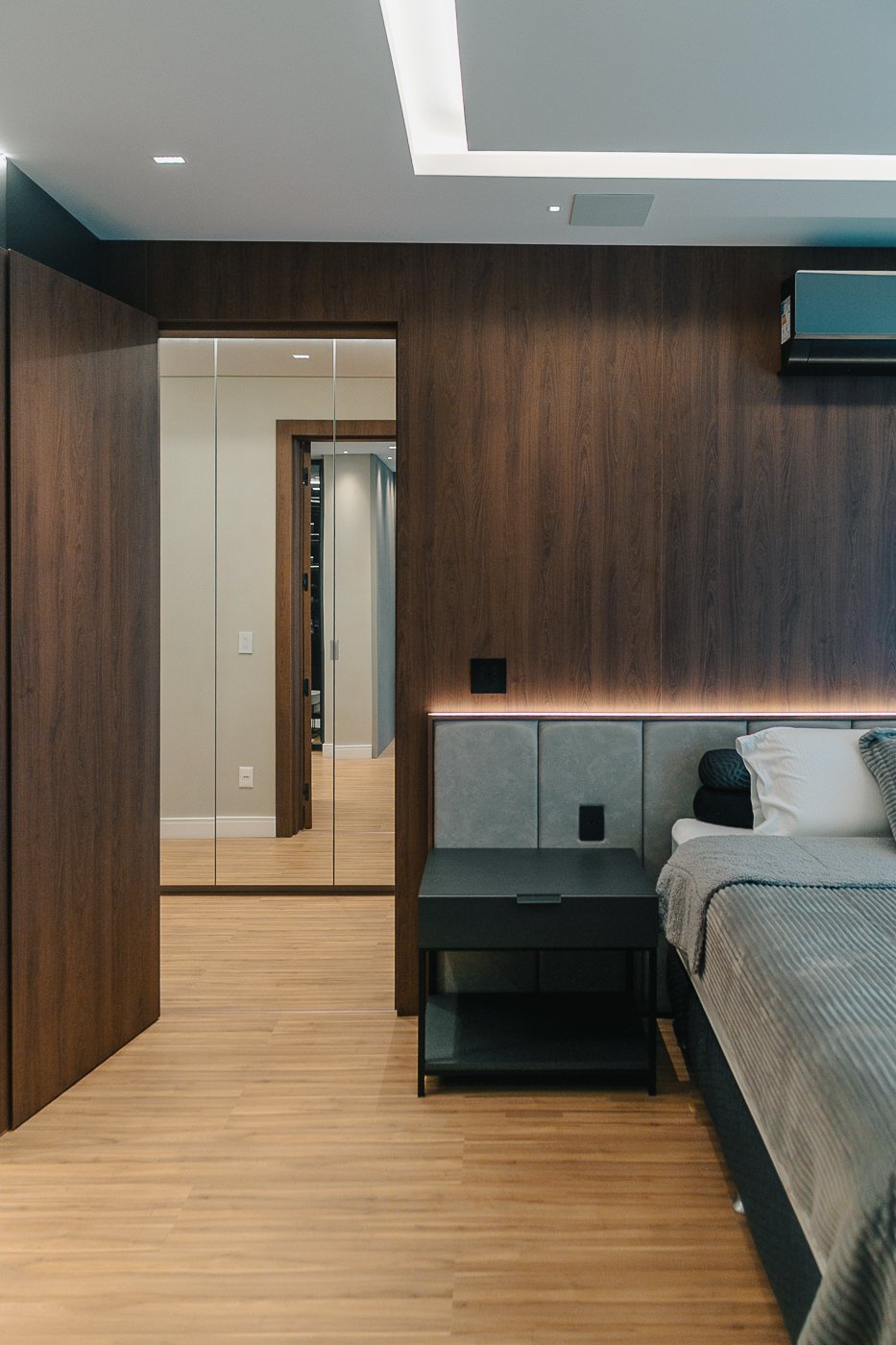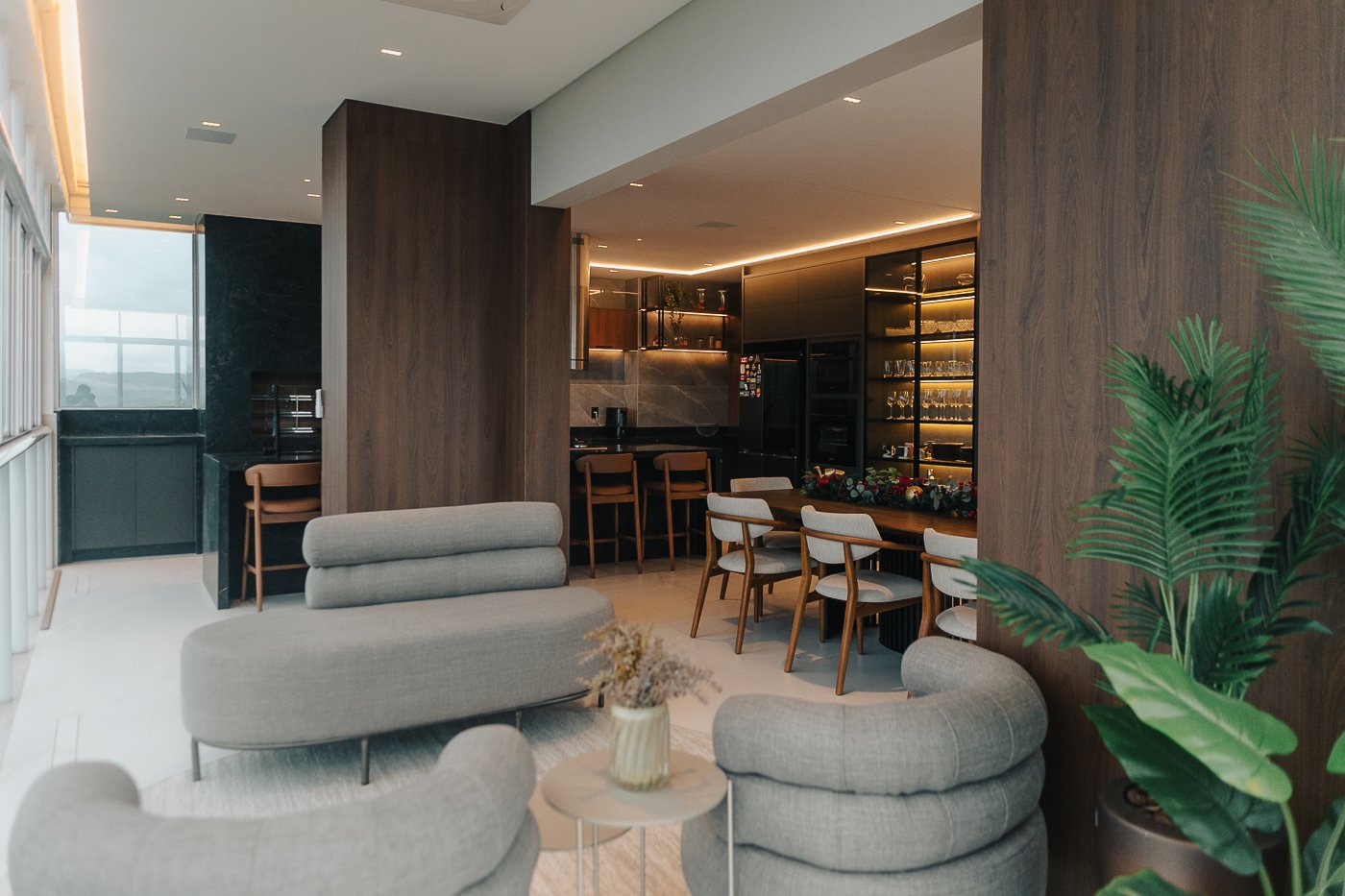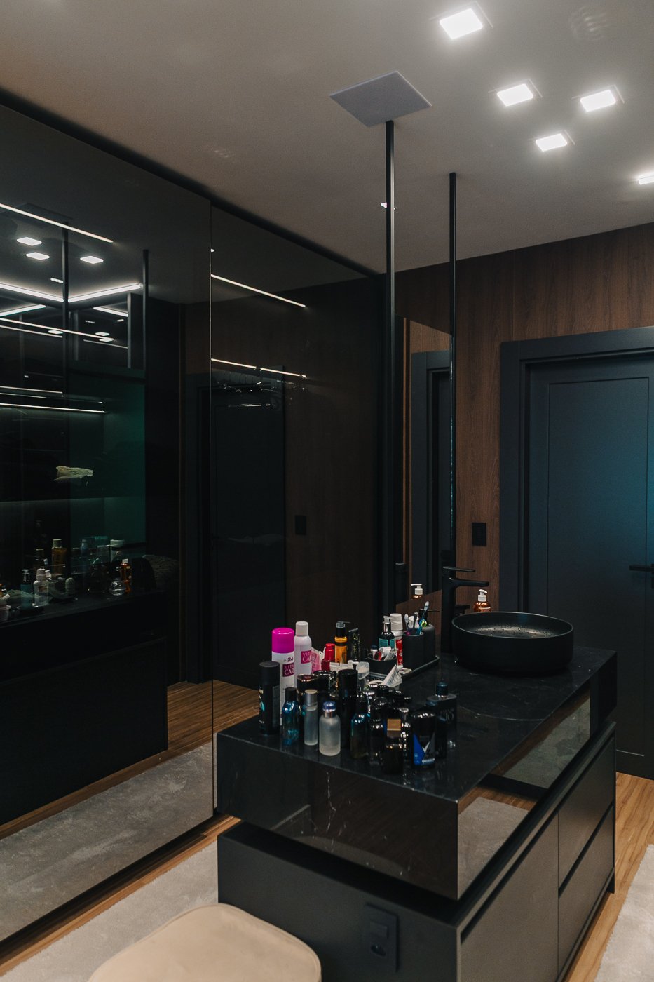 Um apartamento pensado para um cliente com personalidade. Tons naturais, sóbrios contrastado com texturas e materiais sofisticados e modernos como o couro e mármore!