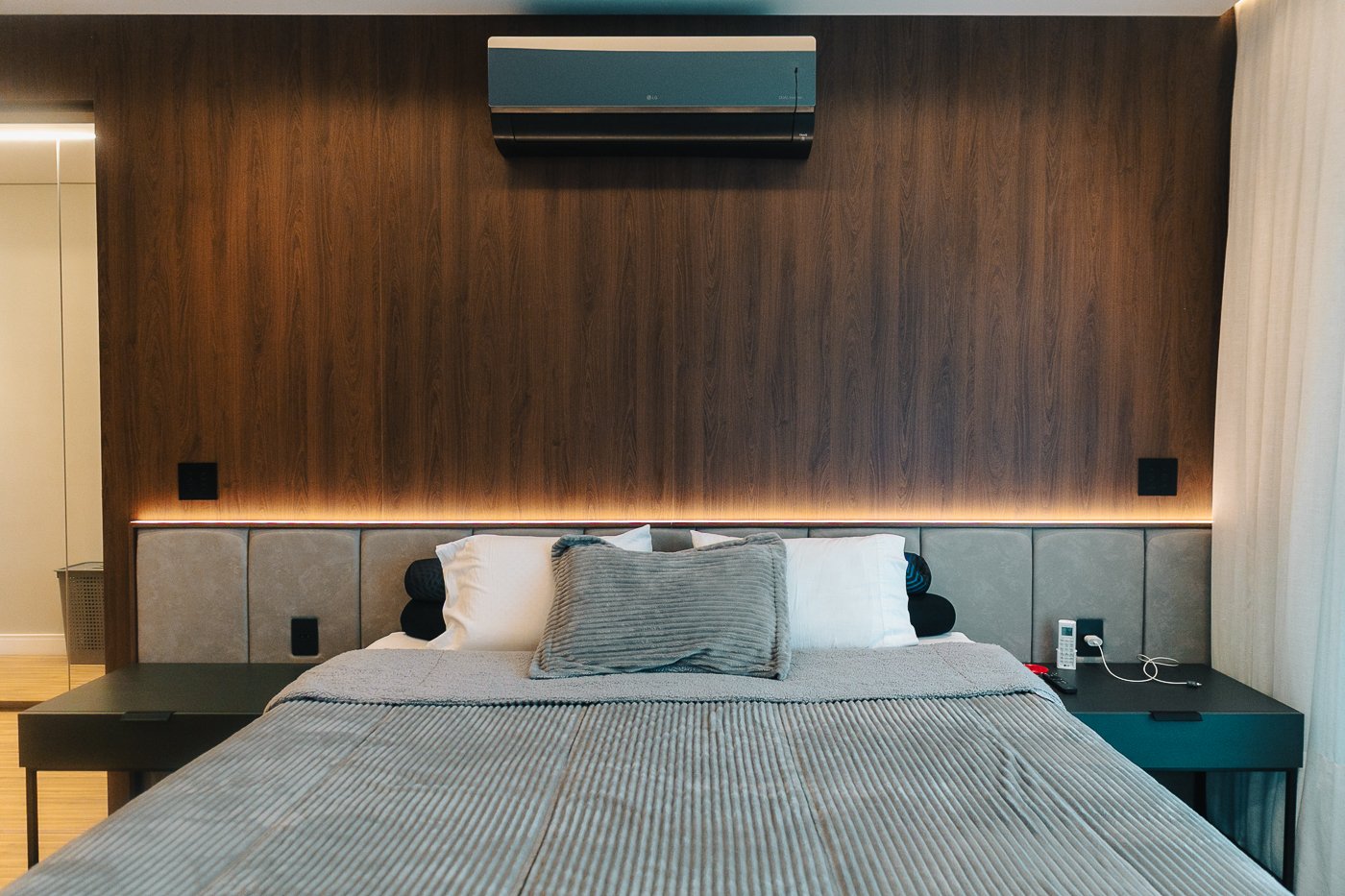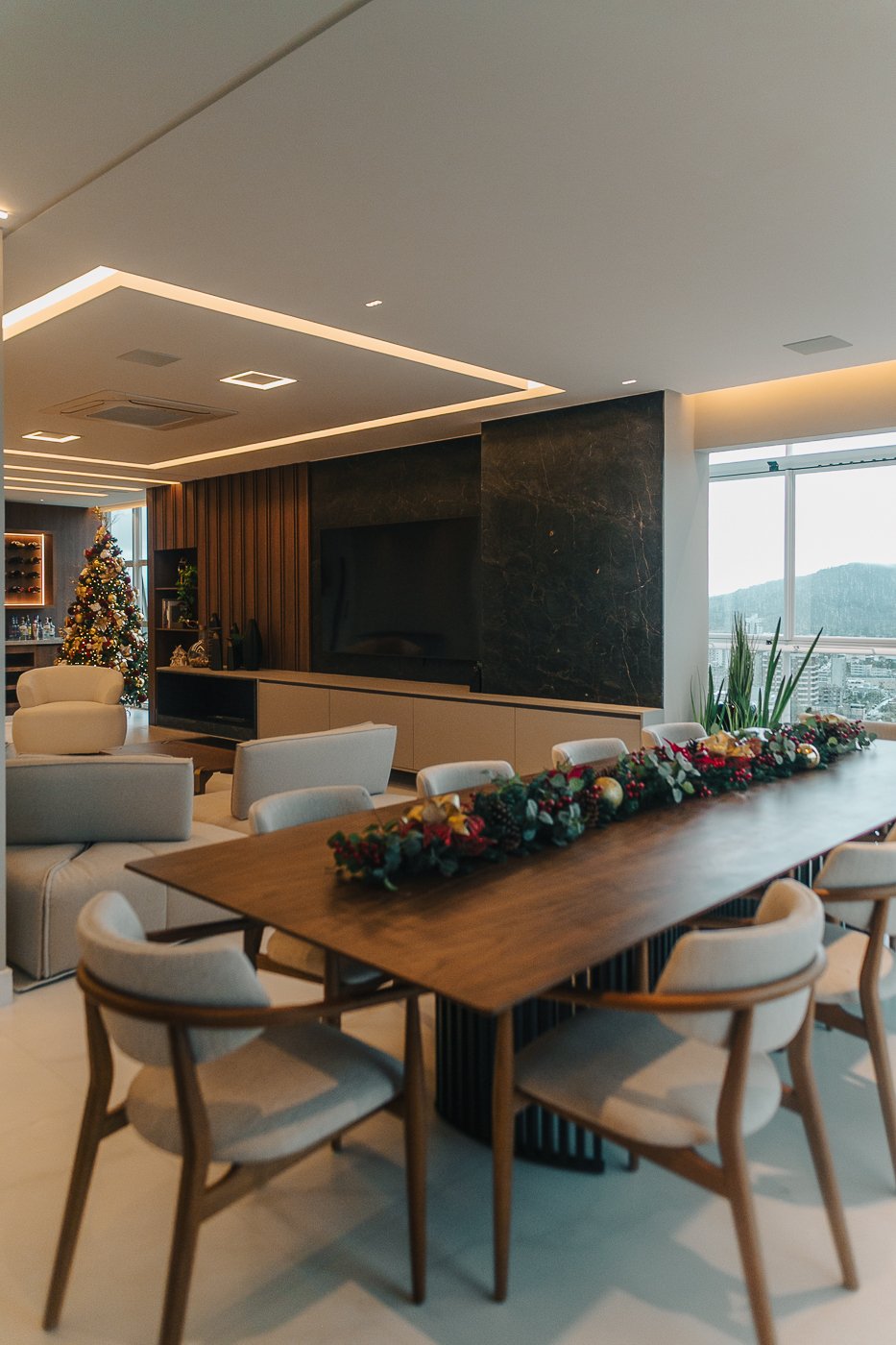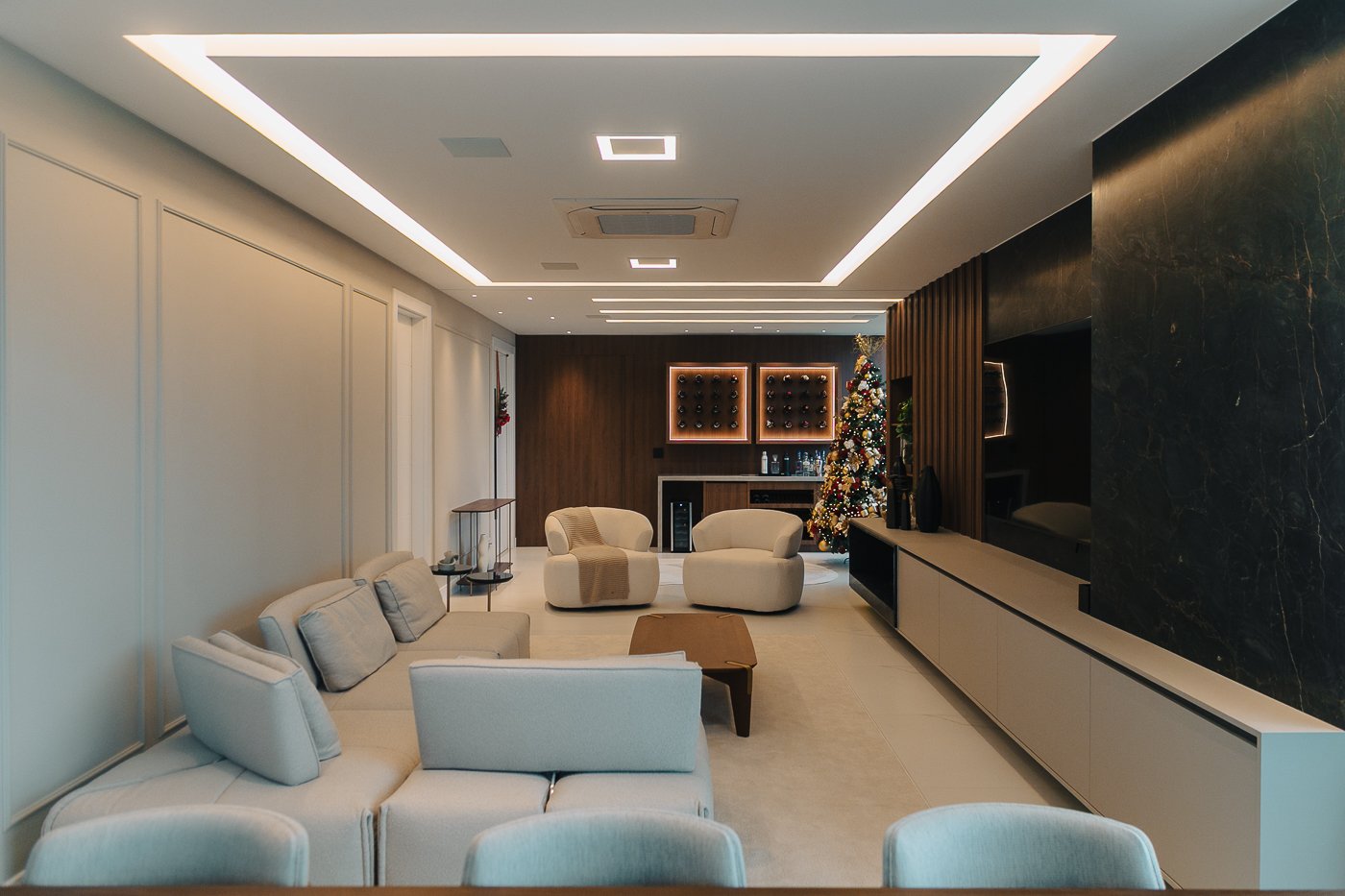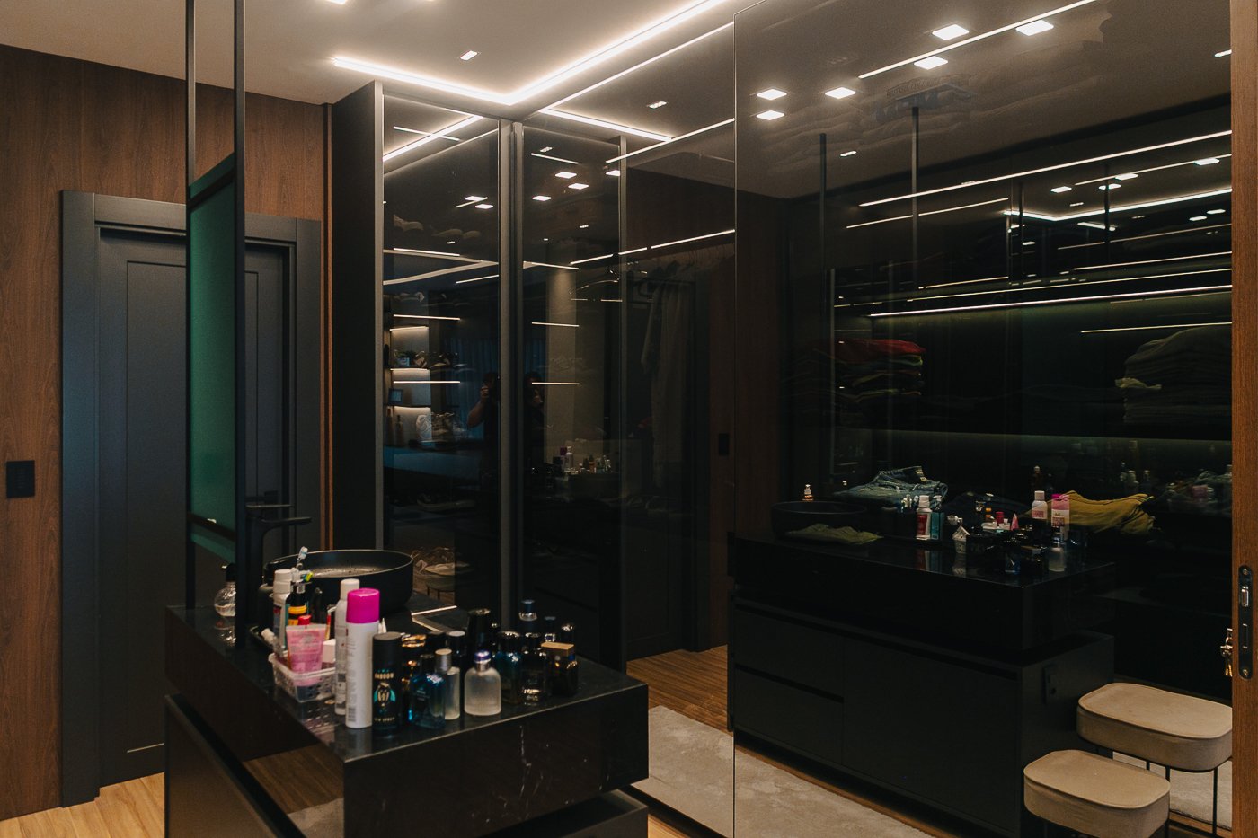 Um apartamento pensado para um cliente com personalidade. Tons naturais, sóbrios contrastado com texturas e materiais sofisticados e modernos como o couro e mármore!