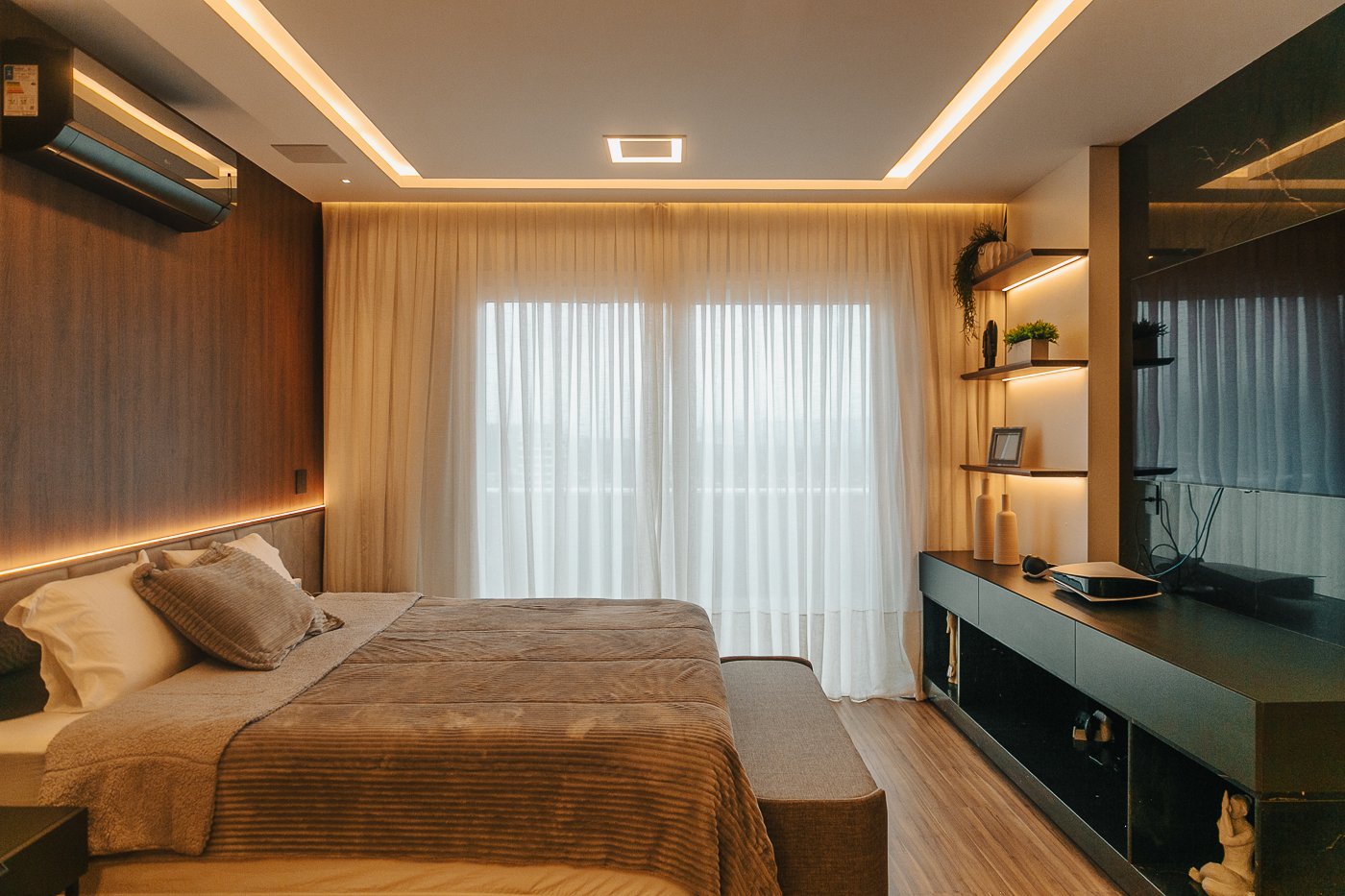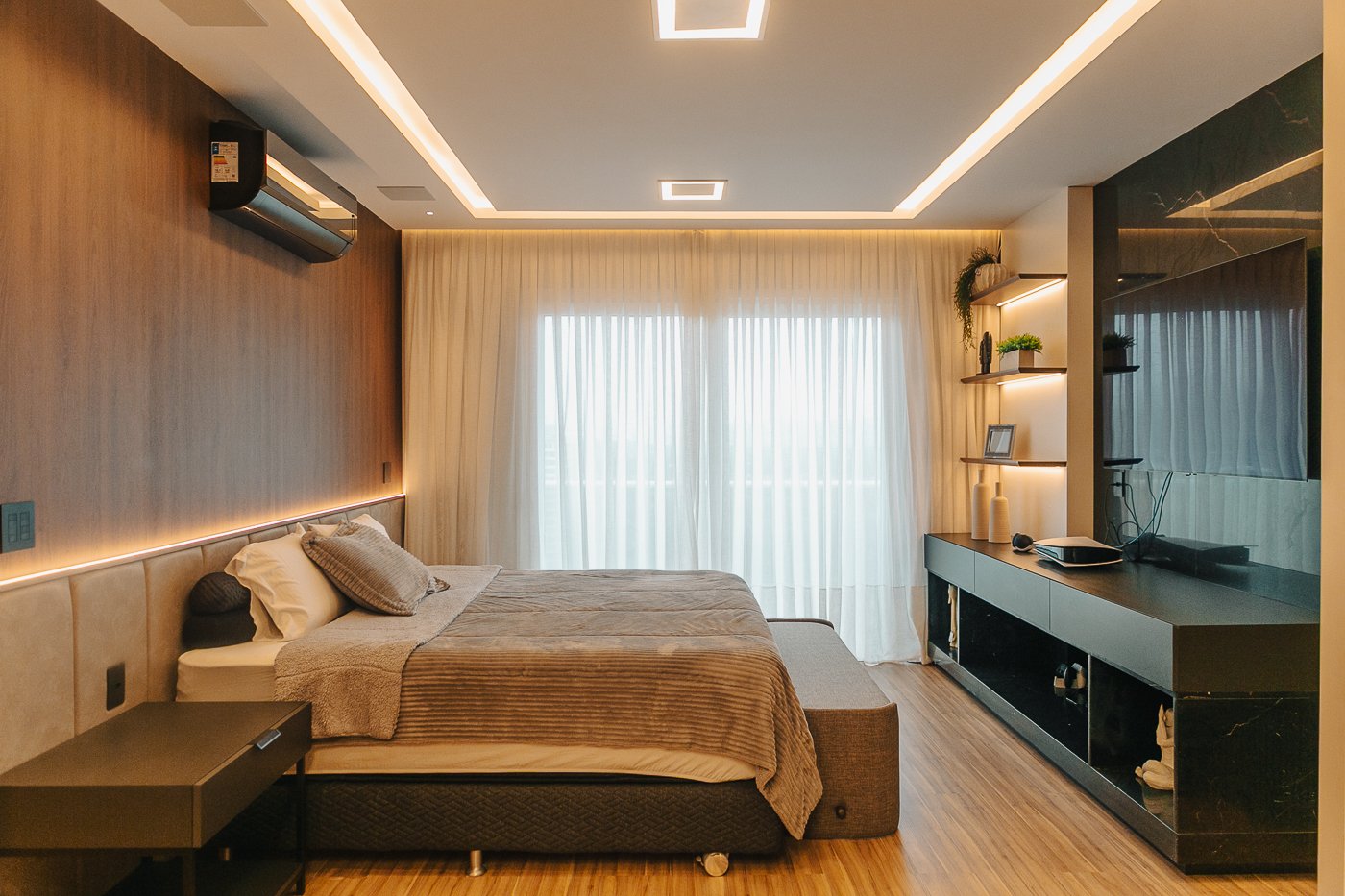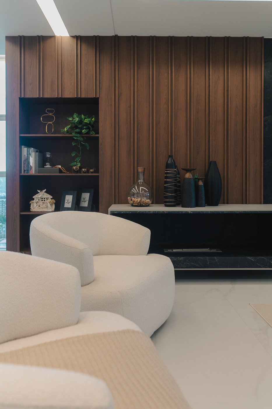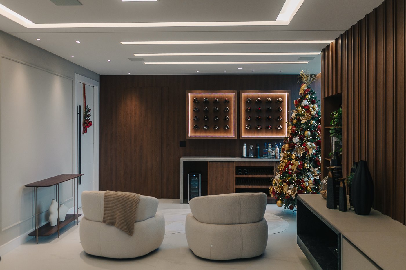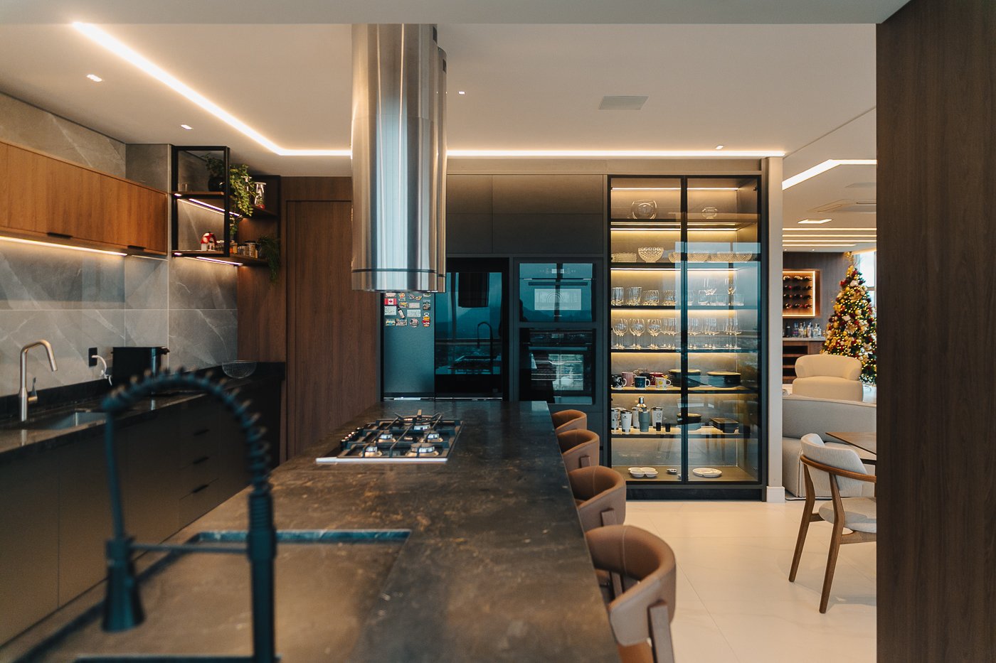 Um apartamento pensado para um cliente com personalidade. Tons naturais, sóbrios contrastado com texturas e materiais sofisticados e modernos como o couro e mármore!