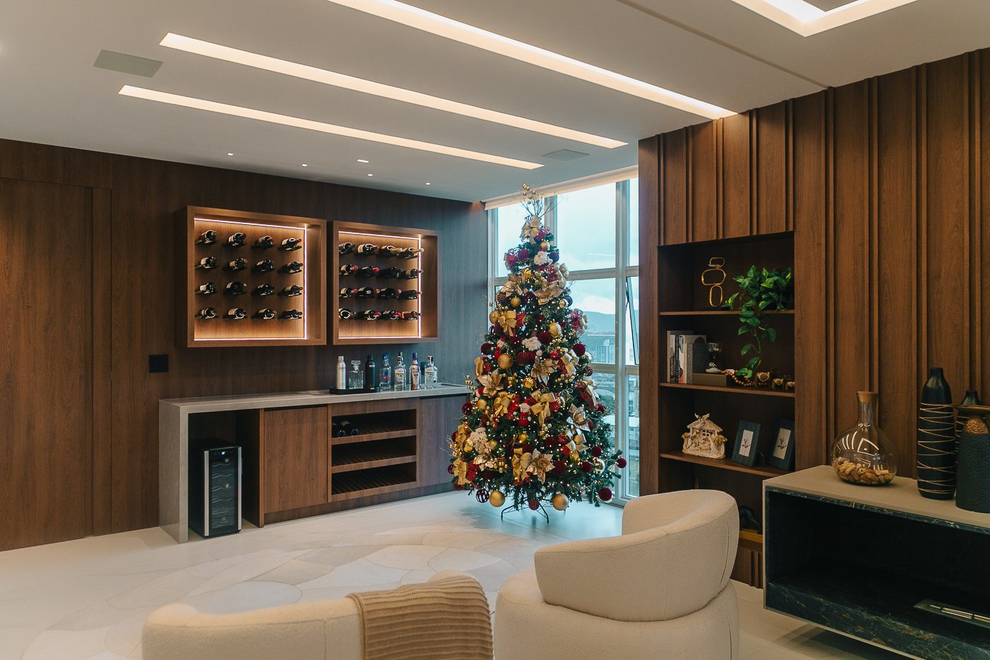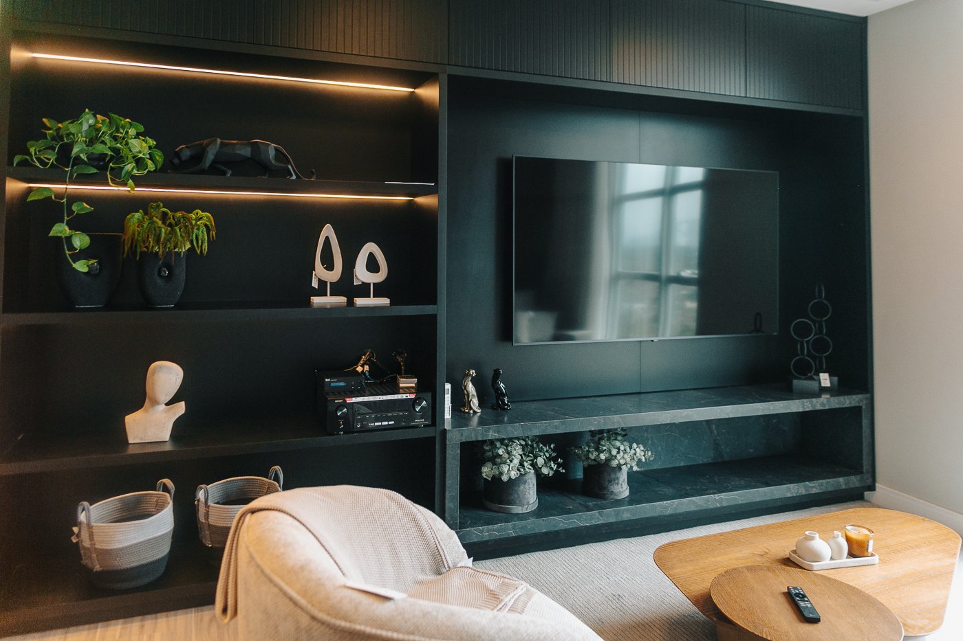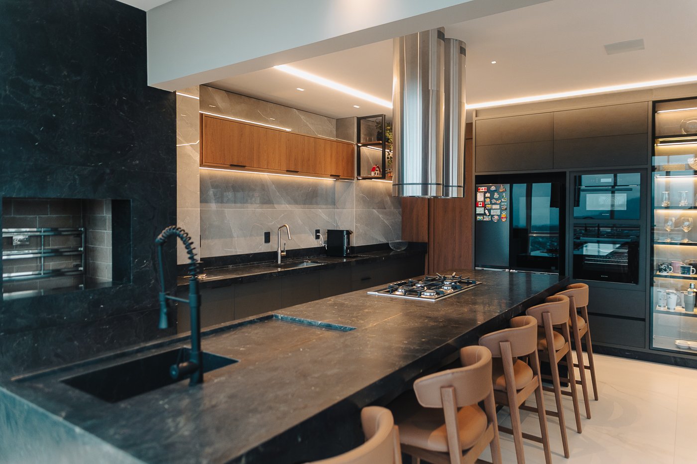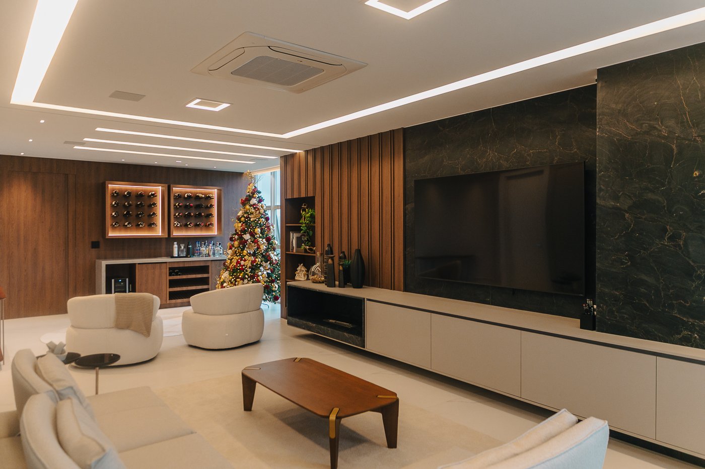 Um apartamento pensado para um cliente com personalidade. Tons naturais, sóbrios contrastado com texturas e materiais sofisticados e modernos como o couro e mármore!