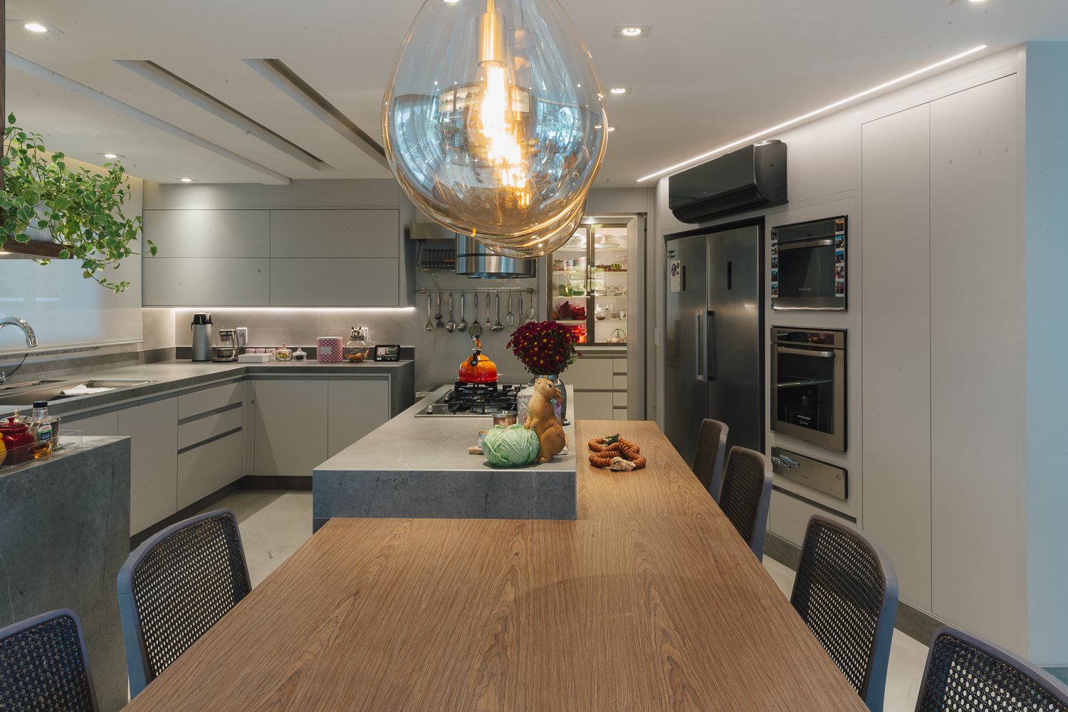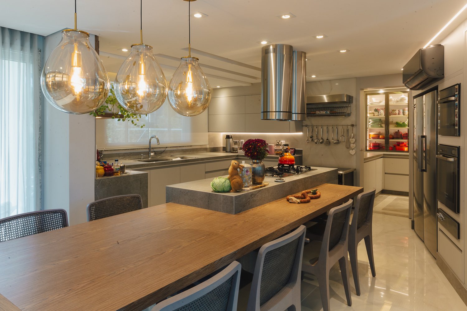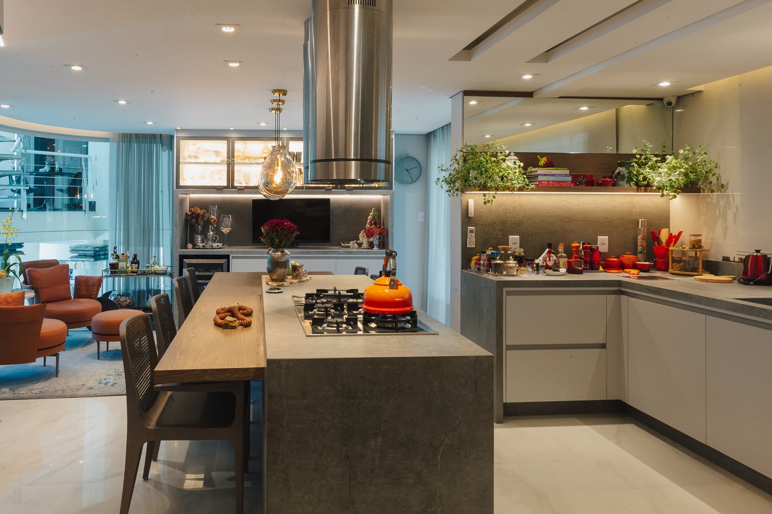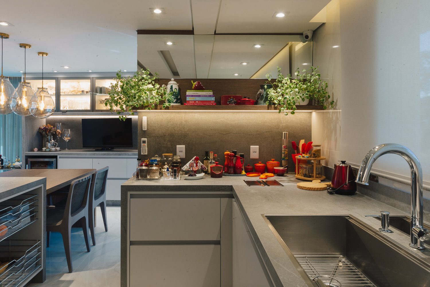 O minimalismo, a tecnologia, a estratégia dos elementos organizados faz toda a diferença. Durabilidade, significado, qualidade são pontos primordiais nesse novo momento aonde a moradia é muitas vezes o novo universo da rotina das pessoas que estão isoladas por saúde ou até mesmo pelo Home Office aonde muitas empresas adotaram essa prática visando segurança de seus membros. Neste projeto valorizamos o espaço gourmet que com as novas tecnologias do mercado trazendo praticidade e funcionalidade para a cozinha. Sendo assim visamos uma experiência, funcionalidade e agilidade para usar a cozinha, mantendo a informalidade de um jantar em família ou amigos reunidos diante de um momento prazeroso que é cozinhar.