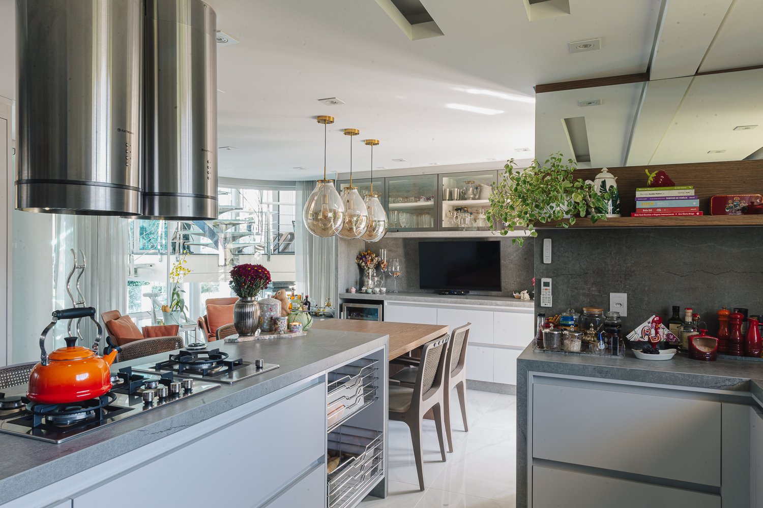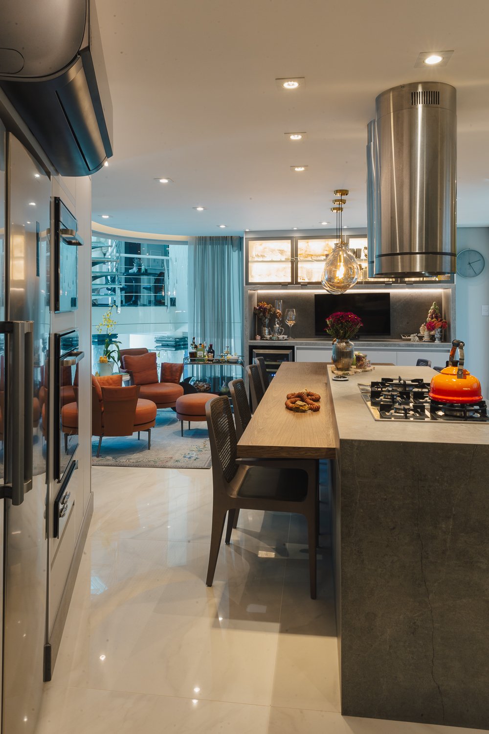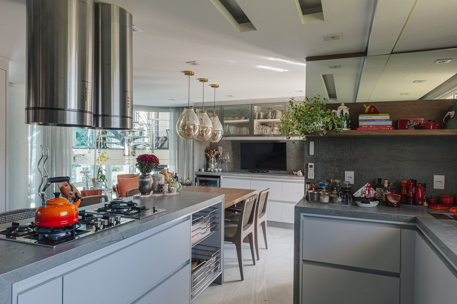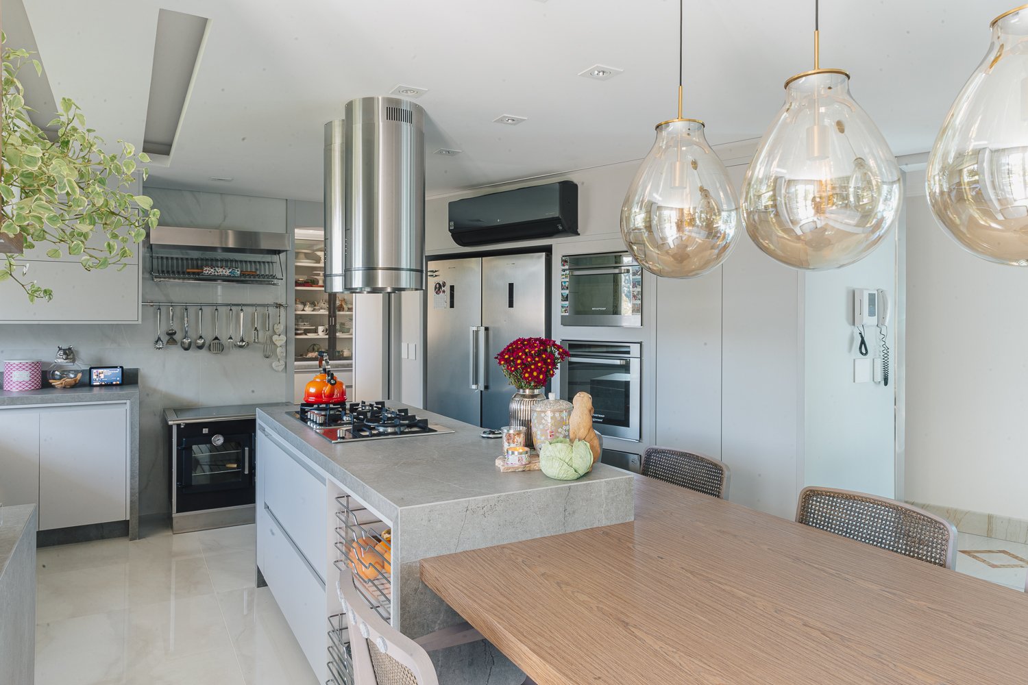 O minimalismo, a tecnologia, a estratégia dos elementos organizados faz toda a diferença. Durabilidade, significado, qualidade são pontos primordiais nesse novo momento aonde a moradia é muitas vezes o novo universo da rotina das pessoas que estão isoladas por saúde ou até mesmo pelo Home Office aonde muitas empresas adotaram essa prática visando segurança de seus membros. Neste projeto valorizamos o espaço gourmet que com as novas tecnologias do mercado trazendo praticidade e funcionalidade para a cozinha. Sendo assim visamos uma experiência, funcionalidade e agilidade para usar a cozinha, mantendo a informalidade de um jantar em família ou amigos reunidos diante de um momento prazeroso que é cozinhar.